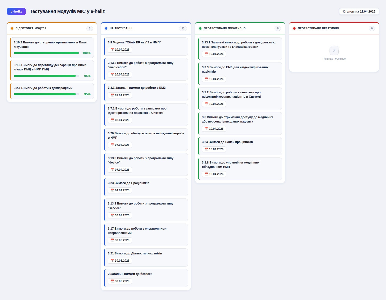 - Відправили в e-hellz для тестування дві заявки на два модулі.