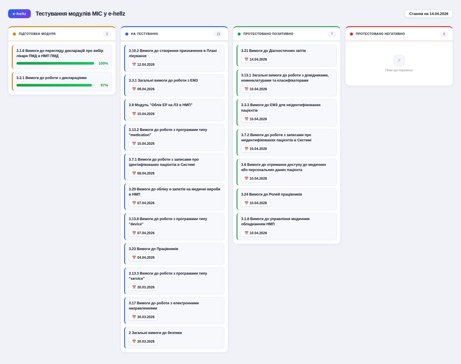 - Відправили в e-hellz для тестування дві заявки на два модулі.